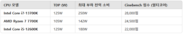 - TDP가 높은 프로세서는 더 강력한 쿨링 시스템이 필요합니다.