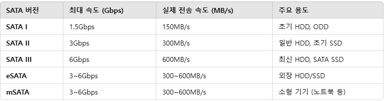 - 특징: 기존 PATA(ATA100, ATA133) 대비 속도 개선.