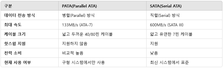 - 특징: 이후 SATA가 등장하면서 점차 대체됨.