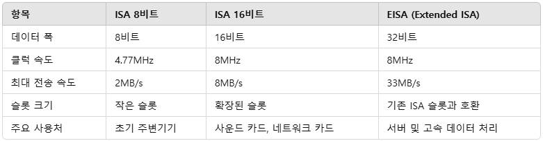 💡 ISA는 저속 장치에는 적합했지만, 고속 데이터 전송에는 한계가 있었습니다.
