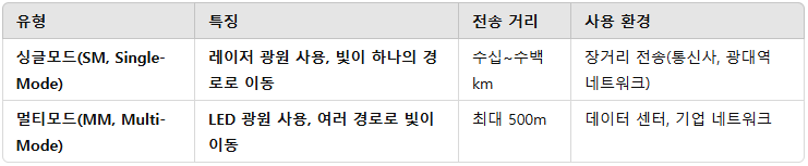 📢 결론: 싱글모드는 장거리 전송, 멀티모드는 단거리 고속 전송에 적합합니다.