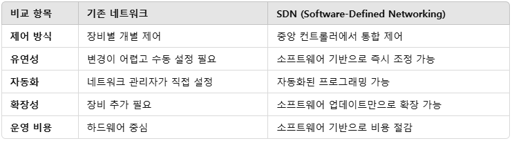 🔹 (2) 기존 네트워크 방식과 SDN의 차이점