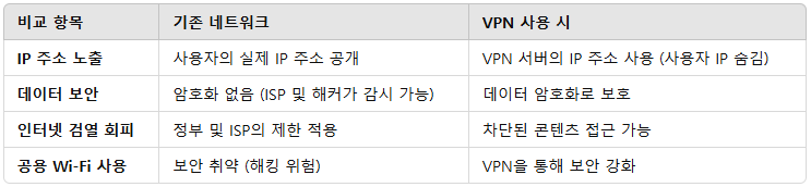 🔹 (2) 기존 네트워크 방식과 VPN의 차이점