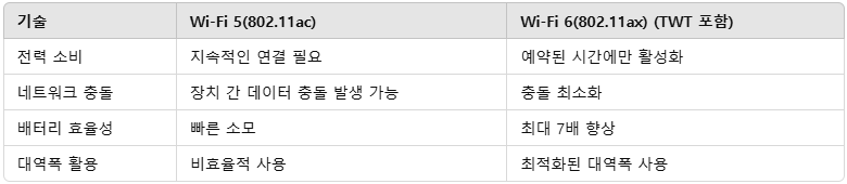 📊 4. TWT와 기존 Wi-Fi 기술 비교