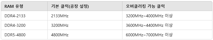 🔹 (1) 램 오버클러킹(RAM OC)의 정의