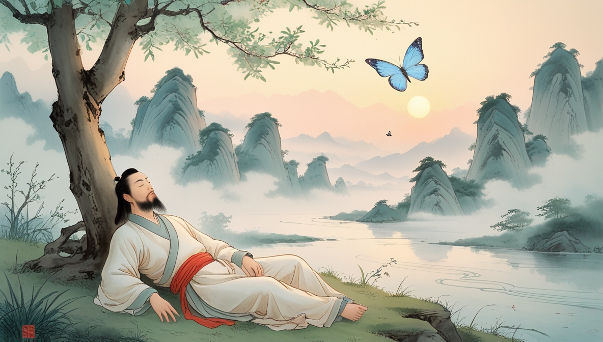 어느 날 장주(莊周)가 꿈을 꾸었습니다. 꿈속에서 그는 한 마리 나비가 되어 자유롭게 하늘을 날며 즐거워했습니다. 나비는 자신이 장주라는 사실을 전혀 모르고, 오히려 자신이 진짜 나비라고 느꼈습니다. 그러나 꿈에서 깨어보니 자신은 다시 장주였습니다. 장주는 생각했습니다. “과연 내가 꿈에 나비가 된 것일까, 아니면 나비가 꿈에 장주가 된 것일까?”